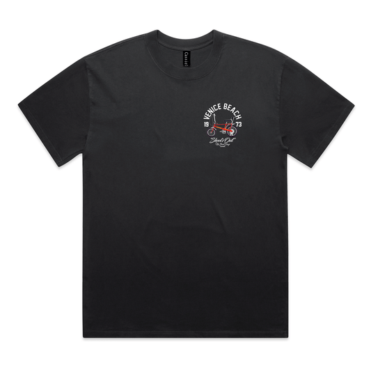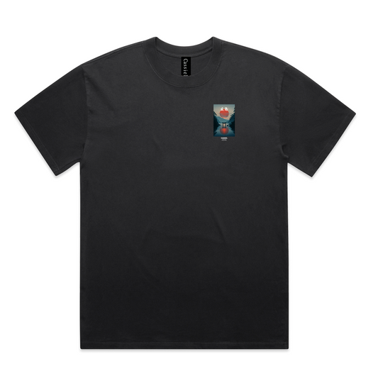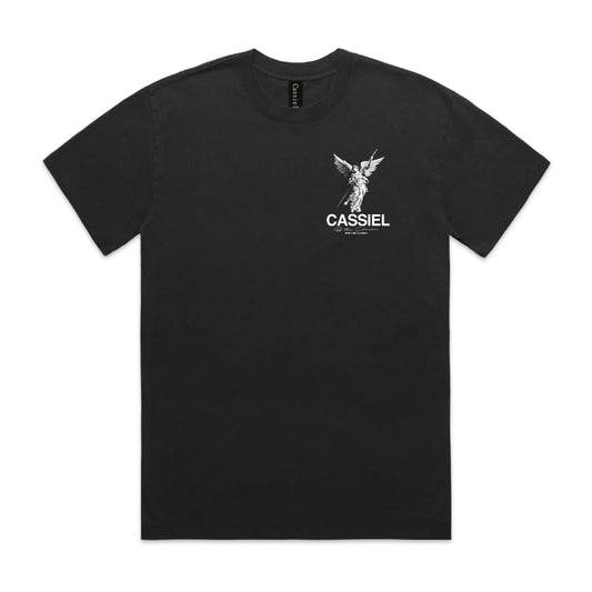 Cassiel Fleur De Lis Angel Back Print Faded Black Tee