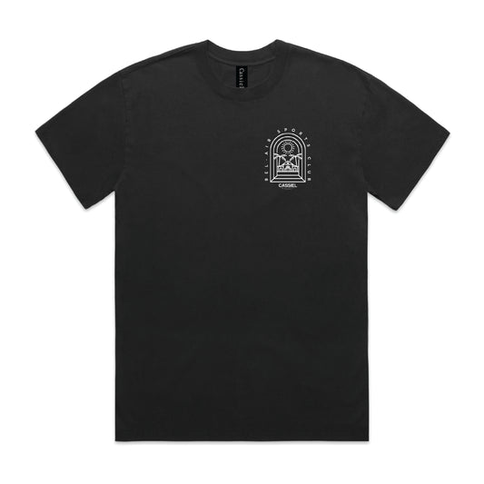 Cassiel Fleur De Lis Angel Back Print Faded Black Tee