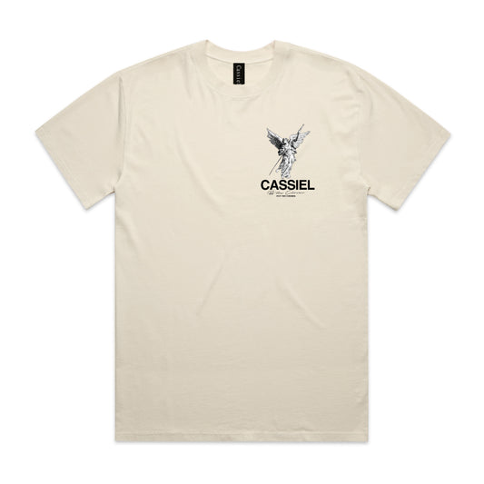 Cassiel Fleur De Lis Angel Back Print Ecru Tee