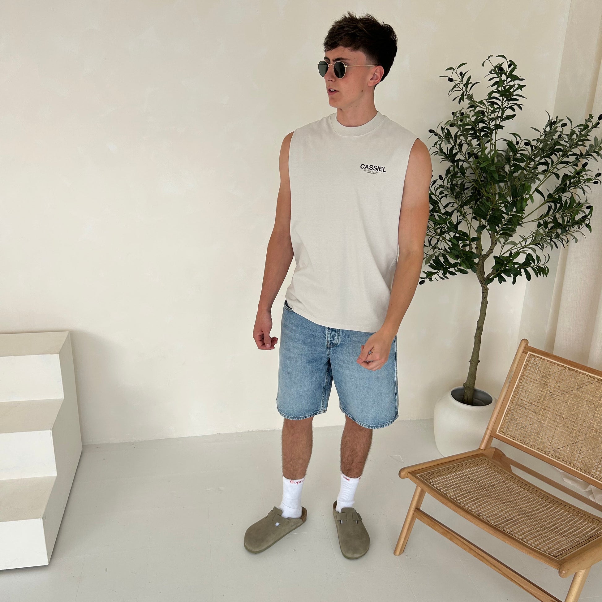 Cassiel For The Chosen Faded Grey Vest made from cotton and finished in faded bone.