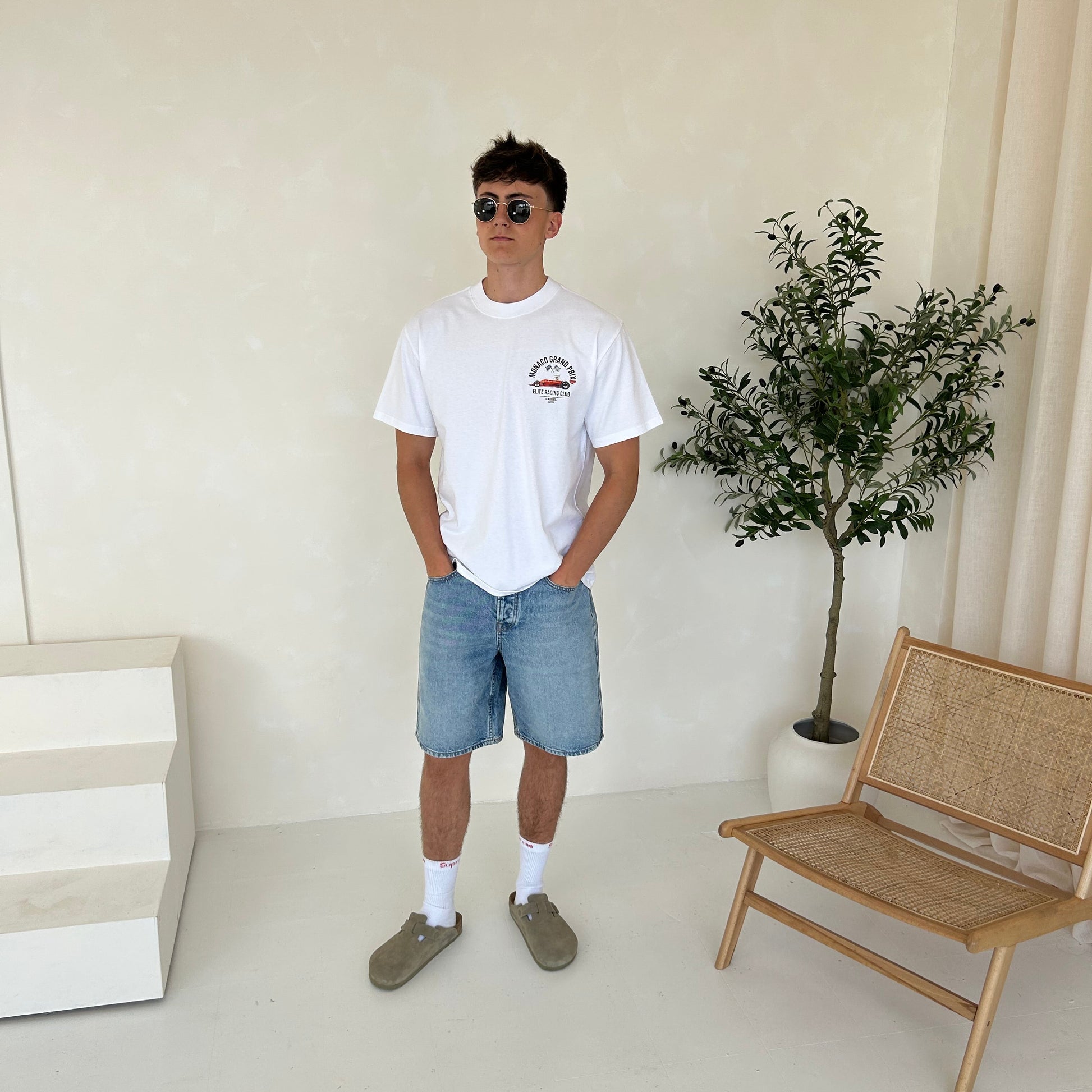 Cassiel Monaco Grand Prix tee made from cotton and finished in faded white.