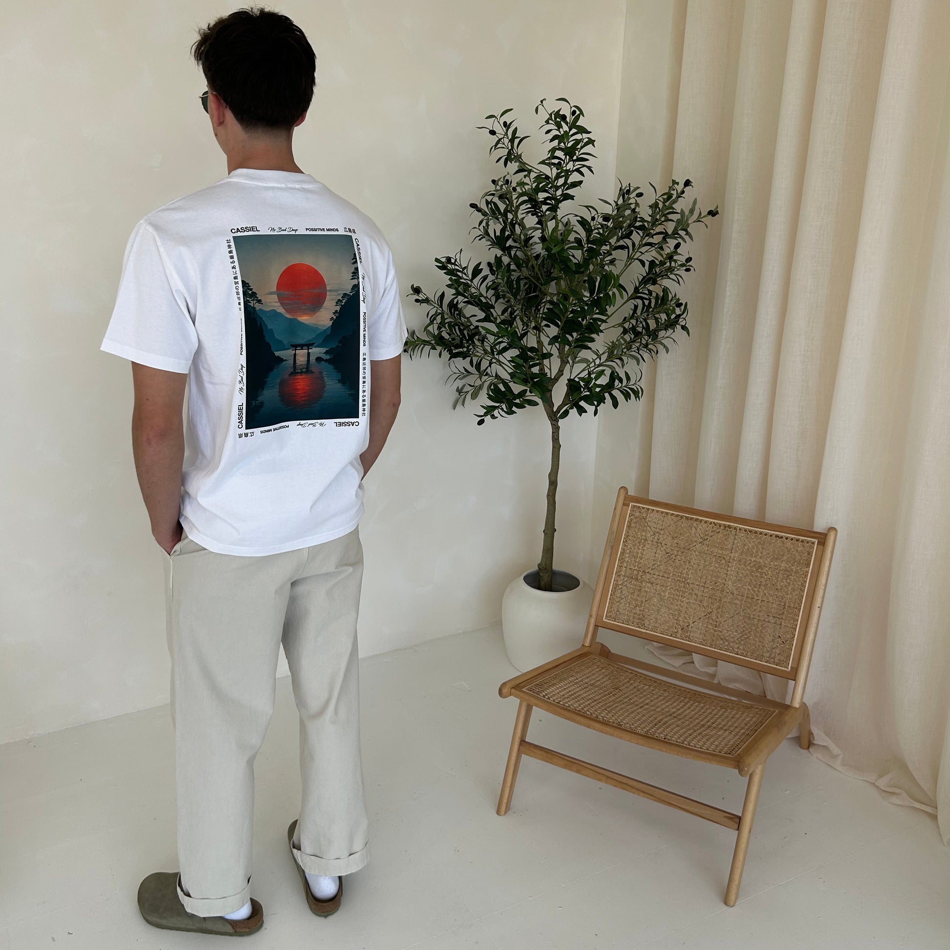 Cassiel Sunset tee made from cotton and finished in faded white.